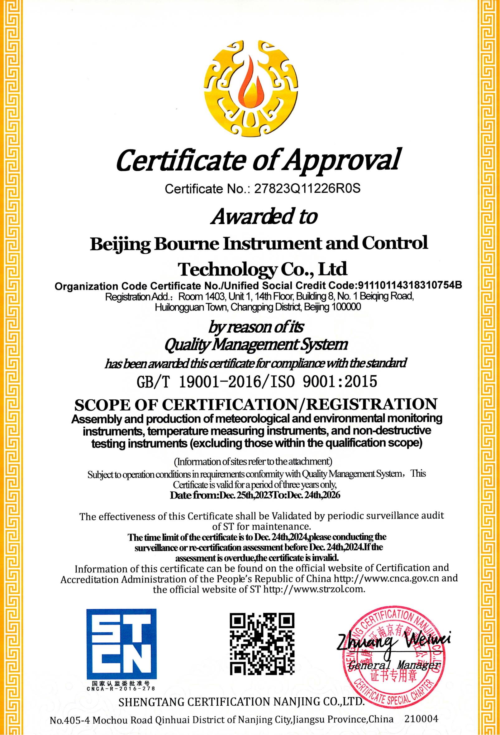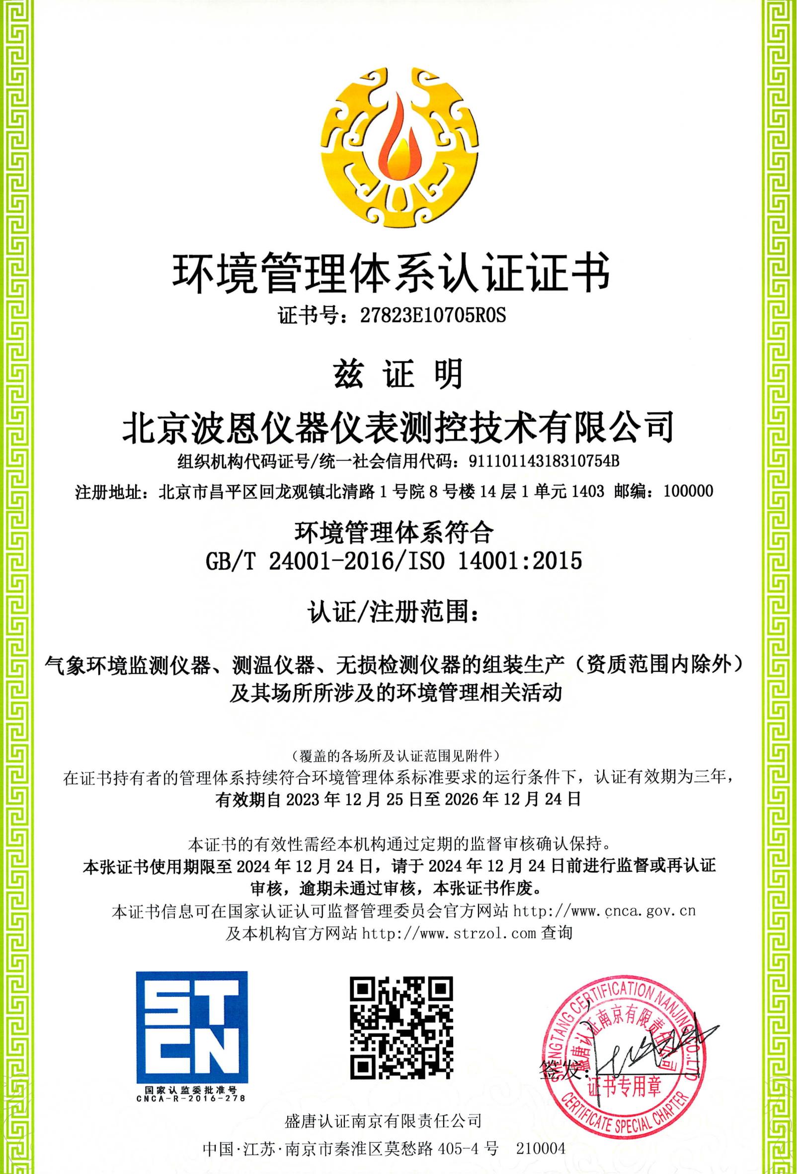 北京波恩儀器公司ISO三體系認(rèn)證證書