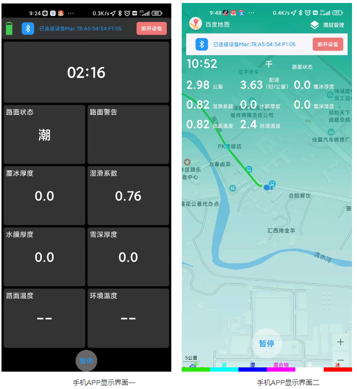 l 檢測路面濕滑系數(shù) 、路面溫度 、環(huán)境溫度